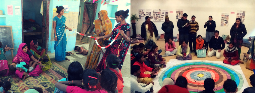 In 1986, women’s education was addressed as part of the larger national education strategy and in accordance the Mahila Samakhya (MS) programme was established. Nirantar collaborated with the MS, Uttar Pradesh to develop a residential education programme for rural women and in conducting residential courses. Gradually, programmes working on women’s livelihoods, SHGs and leadership through Panchayats and federations started to realise the indispensability of adult literacy in creating women’s leadership and empowerment. However, in an environment that lacks capacity-building trainings and literacy material from a rights-based and empowerment perspective, Nirantar offered and still works towards filling this dearth.